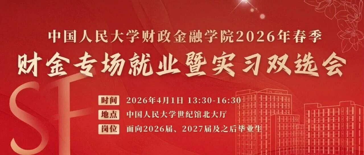 学生邀请函 | 【4月1日13:30】中国人民大学2026年春季财金专场就业暨实习双选会 人大就业 · 公众号 · · 昨天 · |
