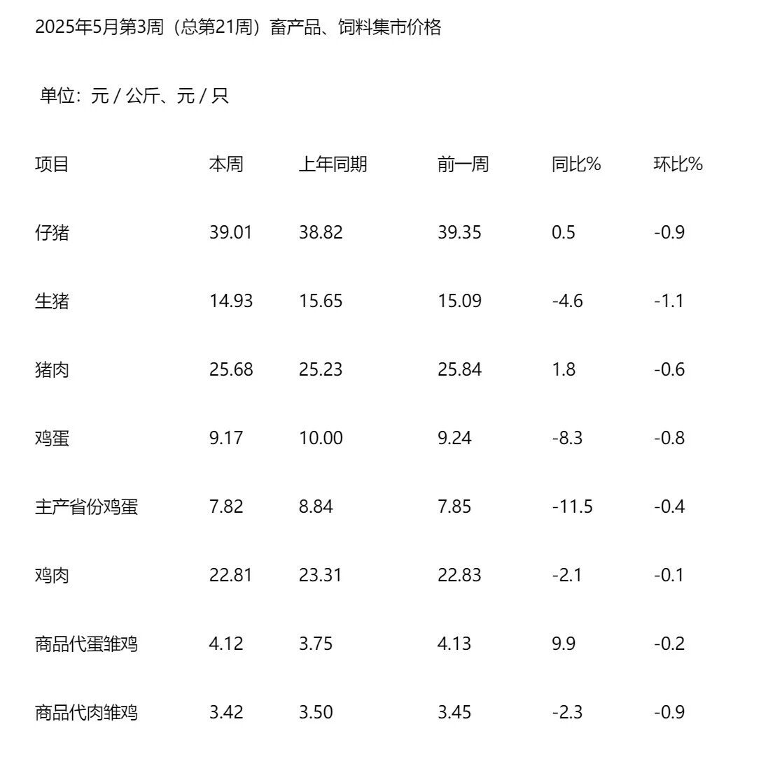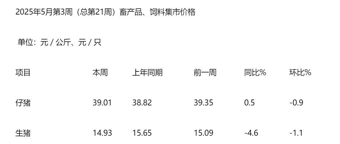 2025年5月第3周畜产品和饲料集贸市场价格情况 中国畜牧业协会猪业分会 · 公众号 · · 5 月前 · |
