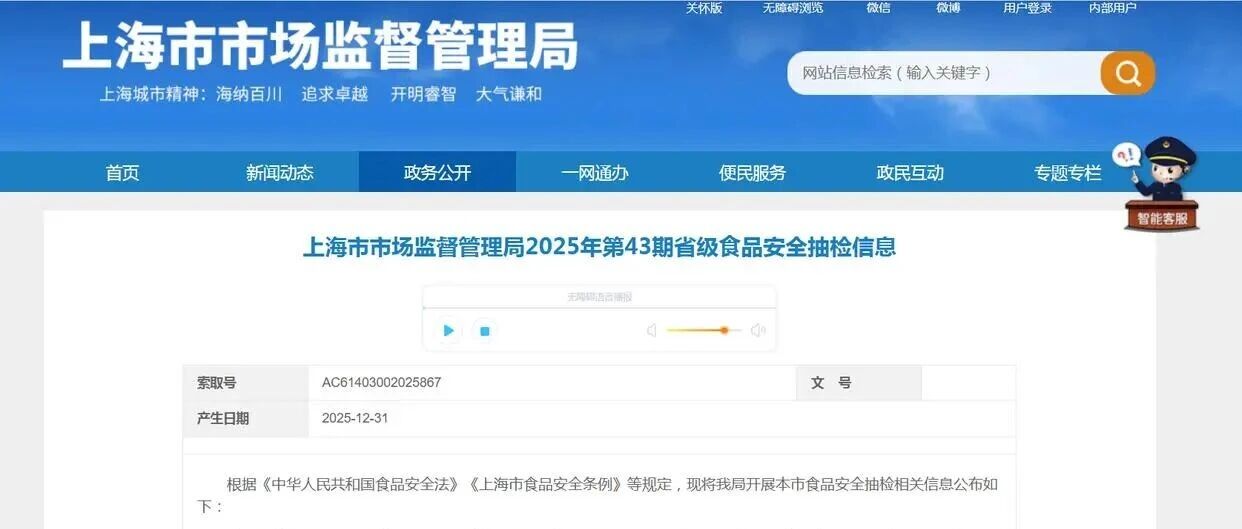 上海市市场监督管理局2025年第43期省级食品安全抽检信息 聚焦食安 · 公众号 · · 1 周前 · |