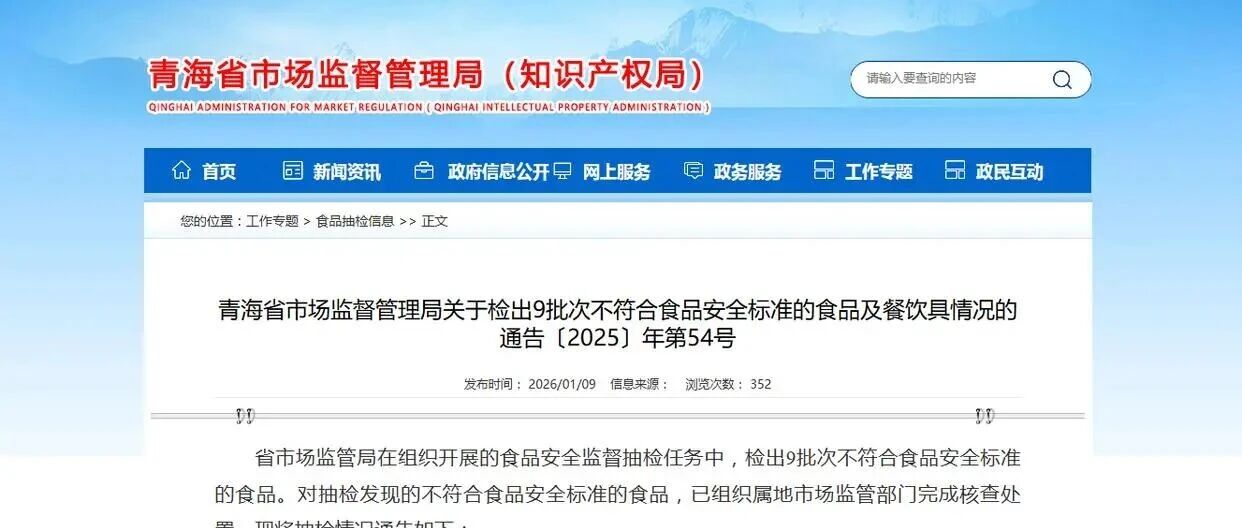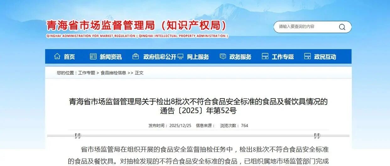 青海省市场监督管理局关于检出8批次不符合食品安全标准的食品及餐饮具情况的通告 聚焦食安 · 公众号 · 食品安全 · 6 天前 · |