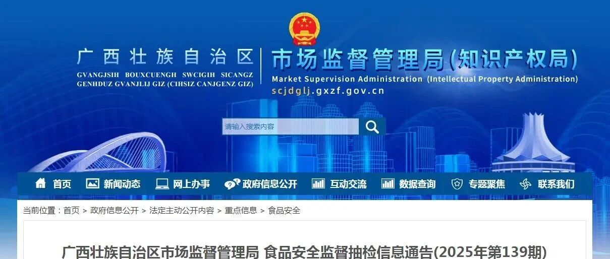 广西壮族自治区市场监督管理局食品安全监督抽检信息通告 聚焦食安 · 公众号 · · 5 天前 · |