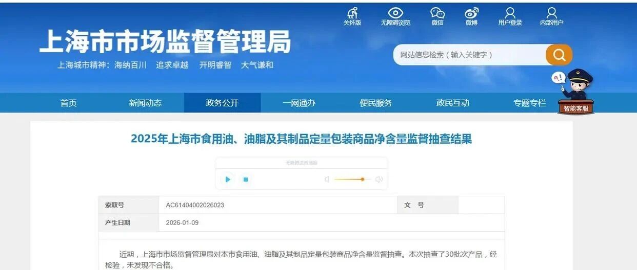 2025年上海市食用油、油脂及其制品定量包装商品净含量监督抽查结果 聚焦食安 · 公众号 · · 昨天 · |