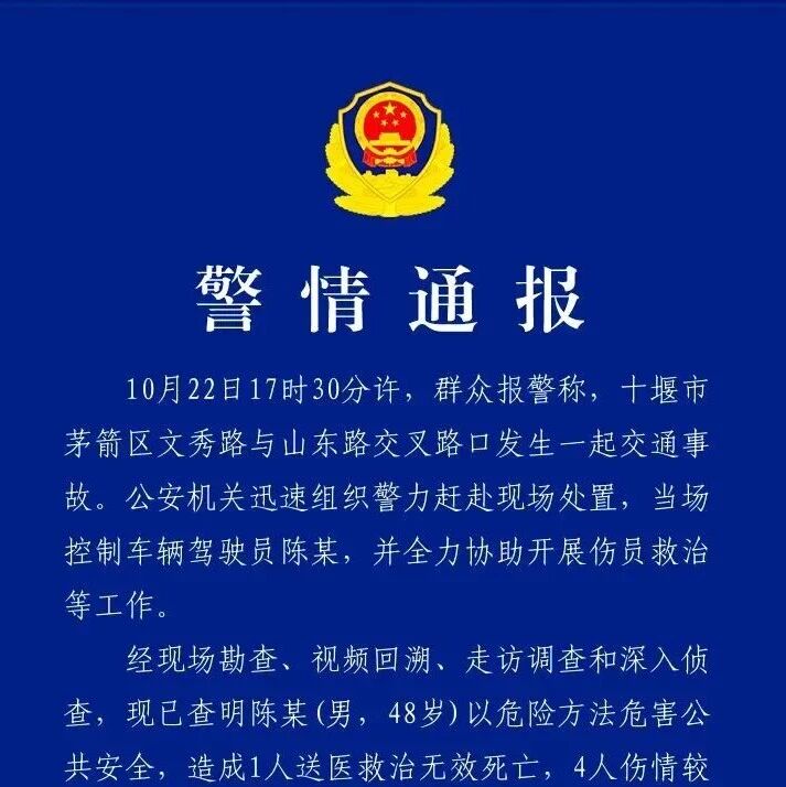 湖北警方通报:陈某(男,48岁)以危险方法危害公共安全