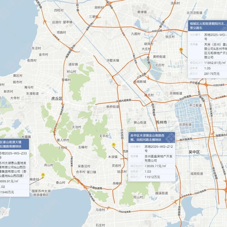 12.19苏州土拍:3宗优质低密成交,嘉盛、山西四建、天房落子 好地讯江苏 · 公众号 · 江苏 · 3 周前 · |