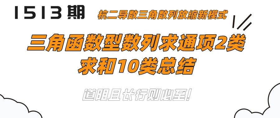 导数三角数列放缩新模式(三角函数数列求和通项与求和总结) Hi数学派 · 公众号 · · 1 周前 · |