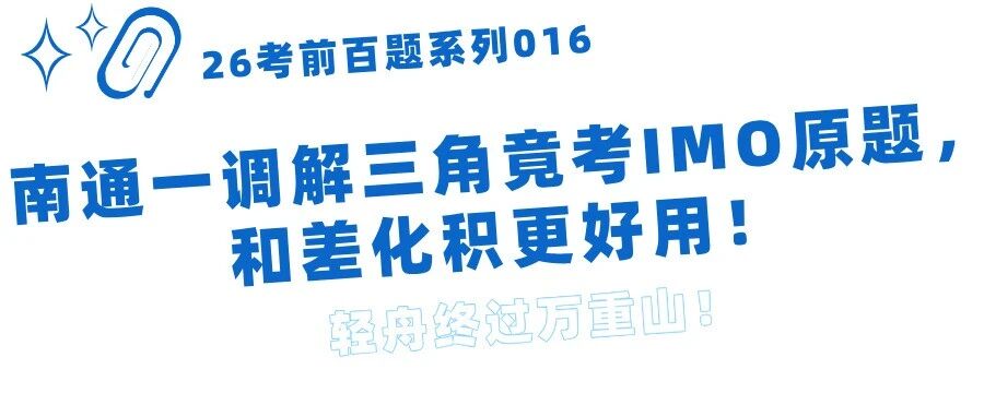 26考前百卷57 | 南通10月一调,解三角压轴竟考竞赛原题 Hi数学派 · 公众号 · · 1 周前 · |