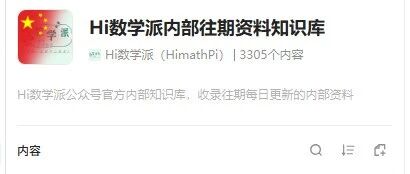 1500+期、3300+份(AI智能知识库) Hi数学派 · 公众号 · · 21 小时前 · |