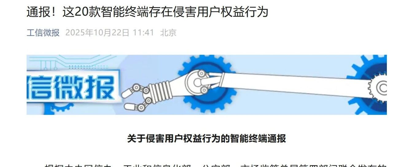 数据合规监管范围扩大到智能终端 | 工信部通报违规智能终端