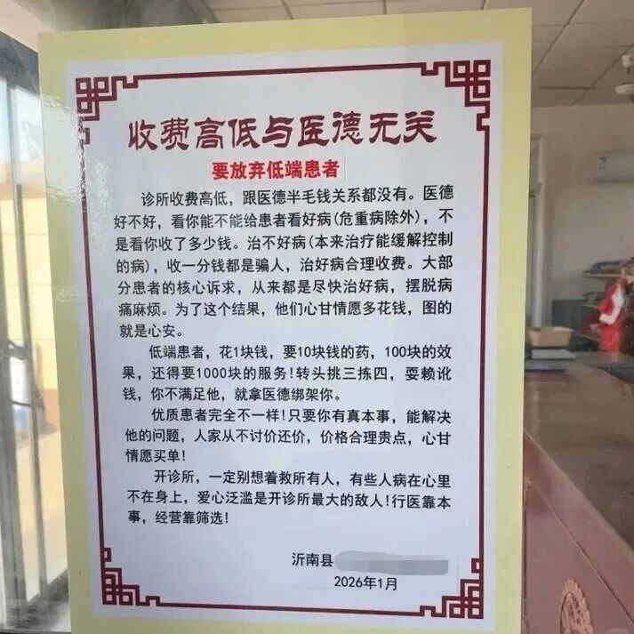诊所张贴公告称 “放弃低端患者”,当地通报:严重背离医者仁心,公告已被撤除,约谈批评负责人,责令整改 930老友记 · 公众号 · 社会 · 21 小时前 · |
