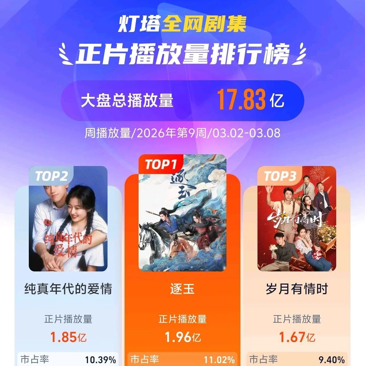 《逐玉》正片播放量周冠 灯塔电影实验室 · 公众号 · · 1 月前 · |