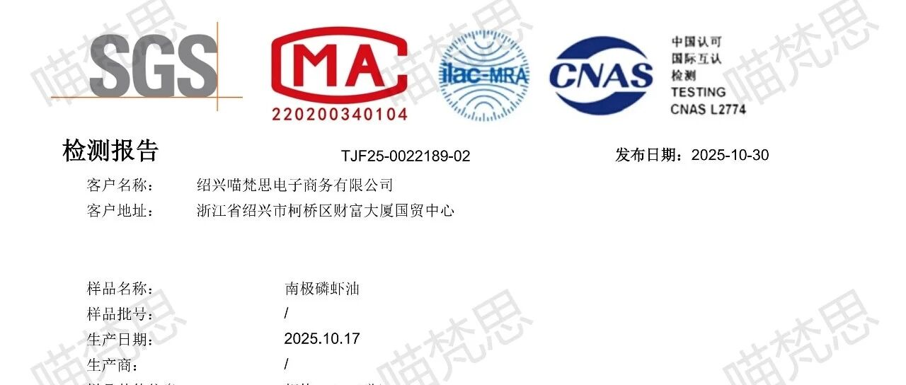 【磷虾油】SGS检测报告---20251017 喵梵思MeowFans · 公众号 · · 1 周前 · |
