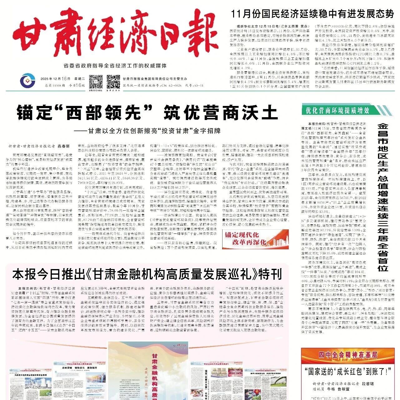 甘肃经济日报|速览 2025年12月16日