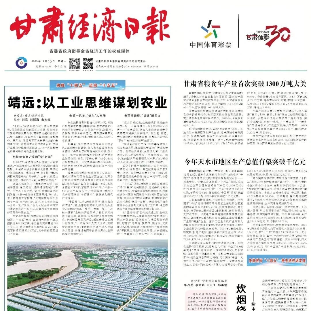 甘肃经济日报|速览 2025年12月15日