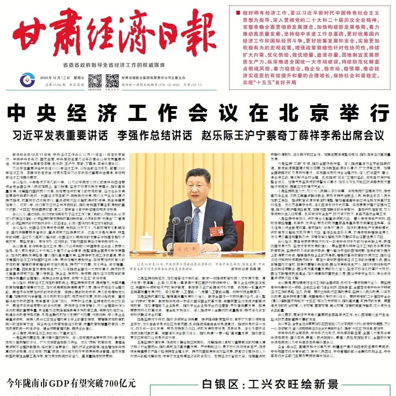 甘肃经济日报|速览 2025年12月12日