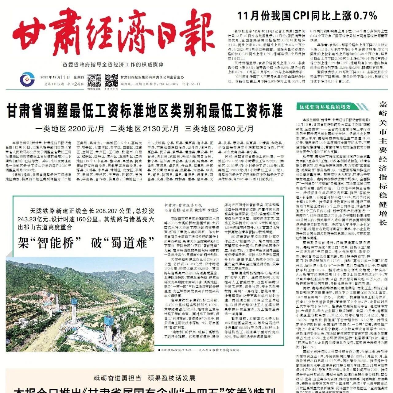 甘肃经济日报|速览 2025年12月11日