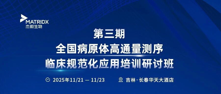 会议预告| 第三期全国病原体高通量测序临床规范化应用培训研讨班 杰毅生物 · 公众号 · · 1 月前 · |