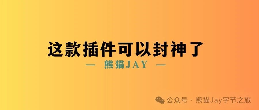 这款插件可以直接封神了! 熊猫Jay字节之旅 · 公众号 · · 1 年前 · |