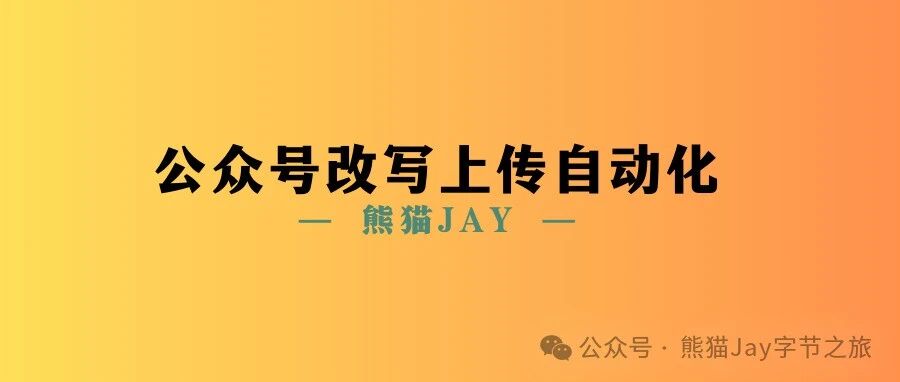解放双手:公众号爆文自动改写+上传,工作量瞬减70%! 熊猫Jay字节之旅 · 公众号 · · 1 年前 · |