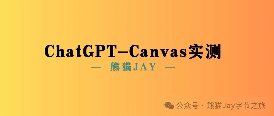 ChatGPT Canvas 实测,三个月不续费的我再次选择上车 熊猫Jay字节之旅 · 公众号 · · 1 年前 · |