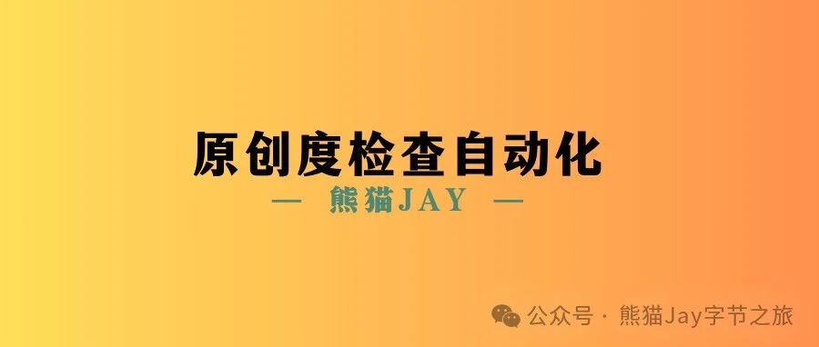 10分钟学会自动化原创度检查,自媒体大V都在用的秘密武器 熊猫Jay字节之旅 · 公众号 · · 1 年前 · |