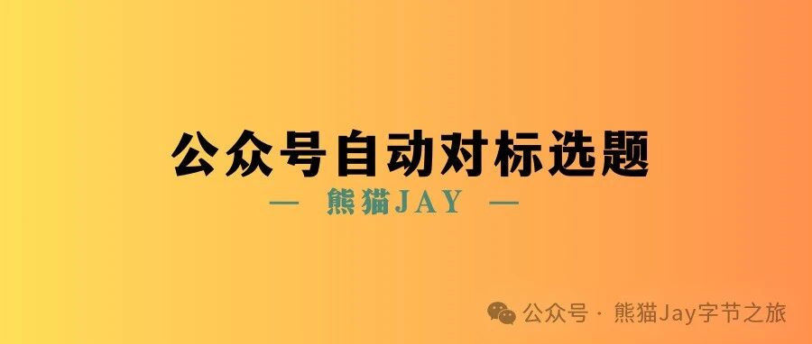 公众号选题还在靠自己?AI智能体自动选题,轻松打造爆款 熊猫Jay字节之旅 · 公众号 · · 1 年前 · |