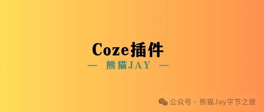 6 款超实用的 Coze 插件,让你的智能体开发效率提升 200% 熊猫Jay字节之旅 · 公众号 · · 1 年前 · |