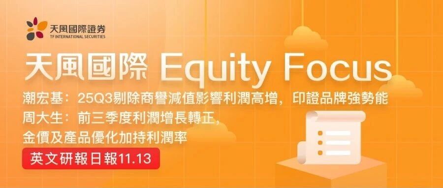 潮宏基:25Q3剔除商譽減值影響利潤高增,印證品牌強勢能 天风国际 · 公众号 · · 昨天 · |