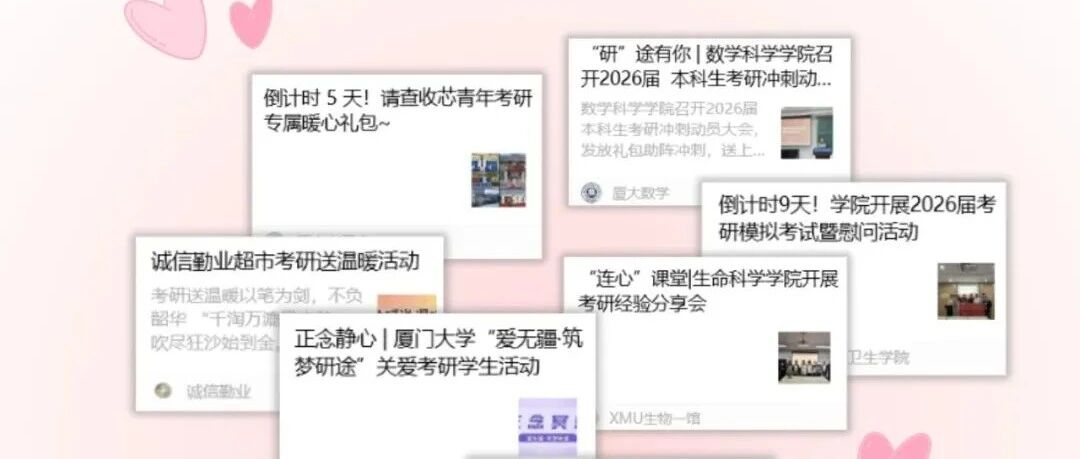 厦大花式助力考研学子!“包”上岸的! 厦门大学 · 公众号 · 大学校园 · 2 周前 · |