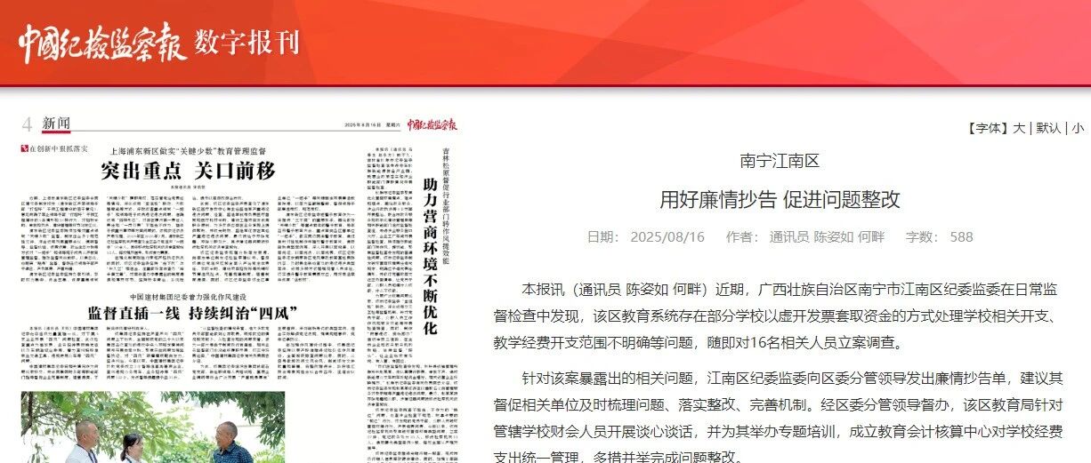 中国纪检监察报|南宁江南区:用好廉情抄告 促进问题整改