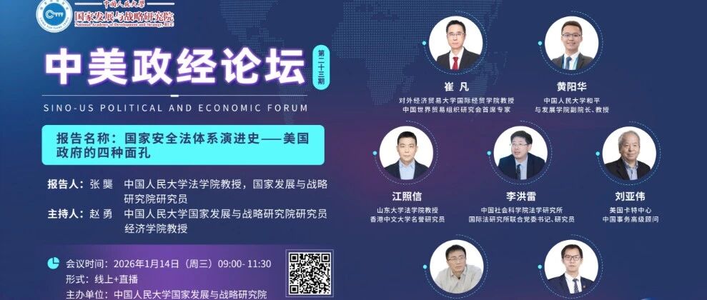 聚焦丨中美政经论坛(第二十三期)《国家安全法体系演进史: 美国政府的四种面孔》 报告发布与研讨会成功... 人大国发院 · 公众号 · · 6 天前 · |