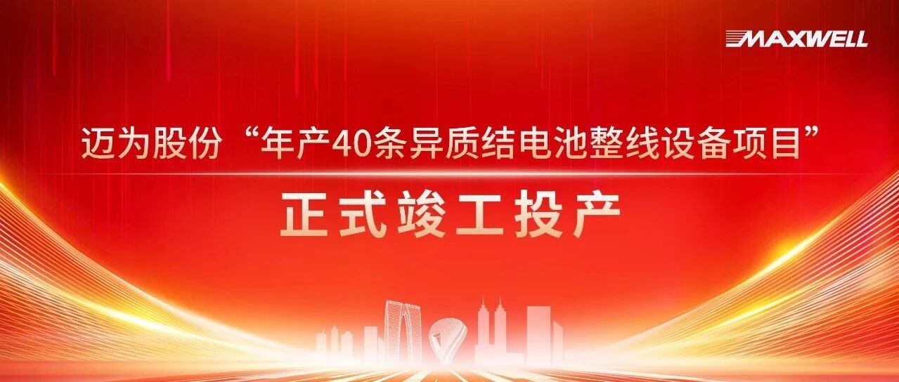 迈为股份“年产40条异质结电池整线设备项目”正式竣工投产 迈为股份 · 公众号 · · 1 年前 · |
