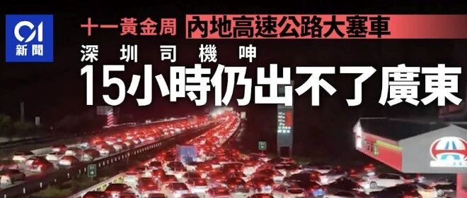 十一黃金周|開車15小時出唔到廣東 高速公路塞車畫面極震撼 香港新港人 · 公众号 · · 6 天前 · |