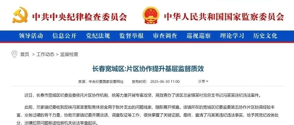 中央纪委国家监委网站:长春宽城区片区协作提升基层监督质效 廉洁长春 · 公众号 · · 5 月前 · |