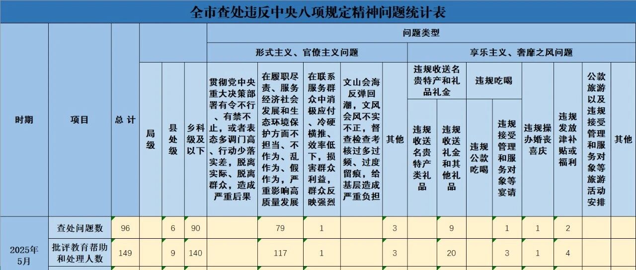 2025年5月全市查处违反中央八项规定精神问题96起 廉洁长春 · 公众号 · · 5 月前 · |