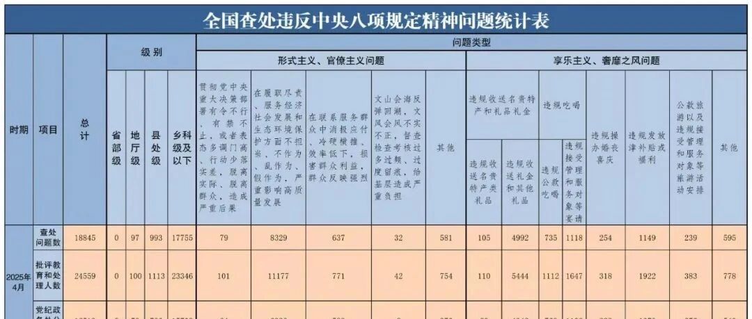 4月全国查处违反中央八项规定精神问题18845起