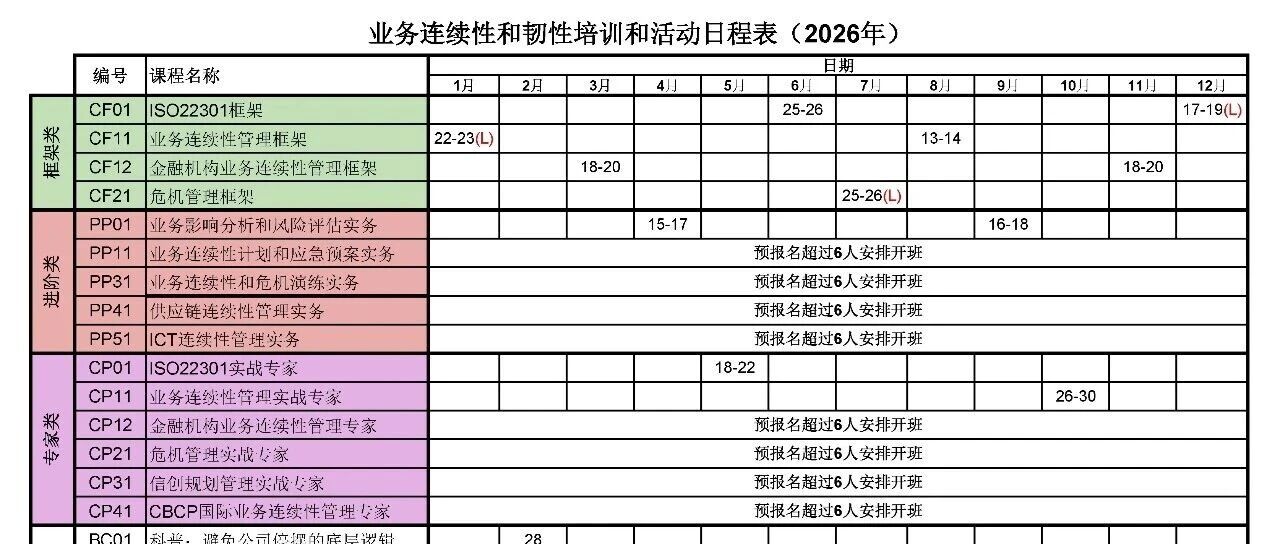业务连续性和韧性培训日程表(2026年) 业务连续性+ · 公众号 · · 2 月前 · |