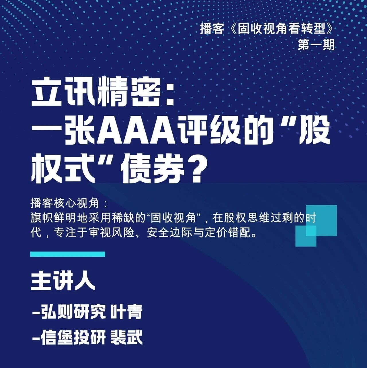 活动 | 固收视角看转型NO.1:立讯精密——一张AAA评级的“股权式”债券? 信堡投研 · 公众号 · · 1 月前 · |