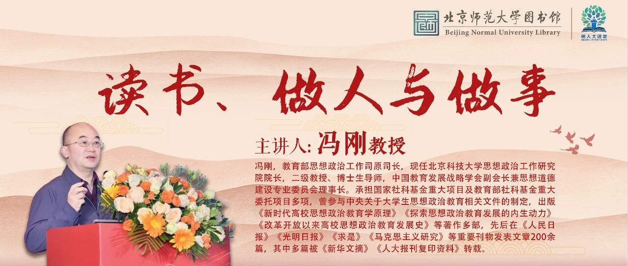 树人大讲堂丨冯刚:读书、做人与做事 北京师范大学图书馆 · 公众号 · 读书 教育 · 1 周前 · |