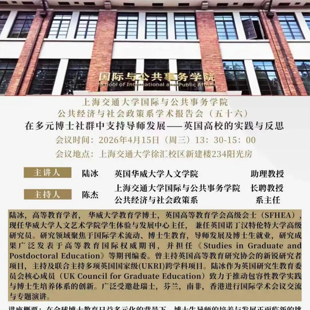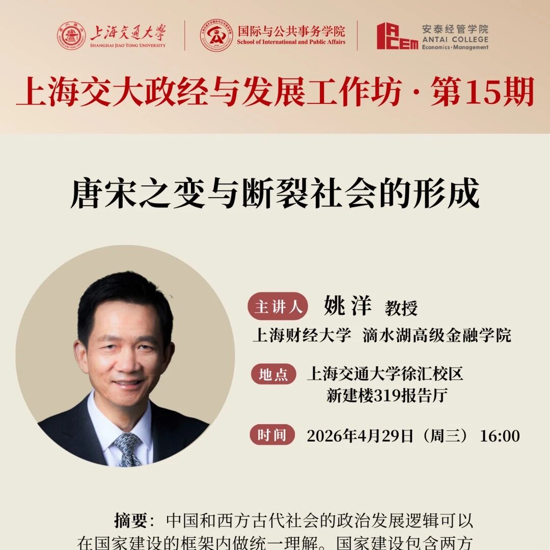上海交大政经与发展工作坊 | 第15期:姚洋(上海财经大学) 国院SJTU · 公众号 · · 4 天前 · |