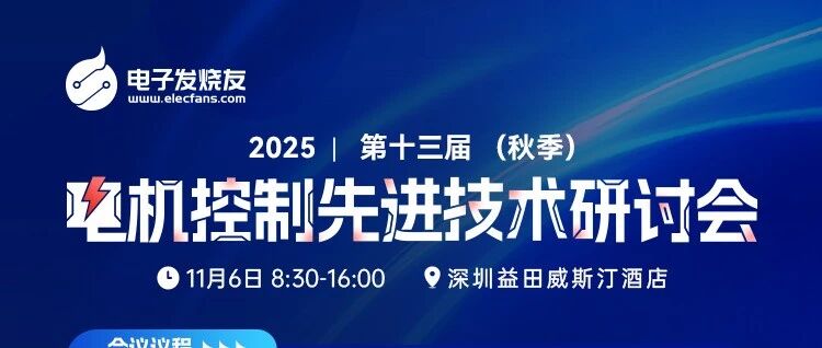 就在今天!邀您参加2025第十三届电机控制先进技术研讨会! 电子发烧友网 · 公众号 · · 2 周前 · |