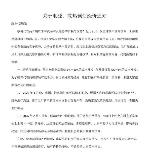 完了!电源、散热器也要大涨价 ittbank · 公众号 · · 1 周前 · |