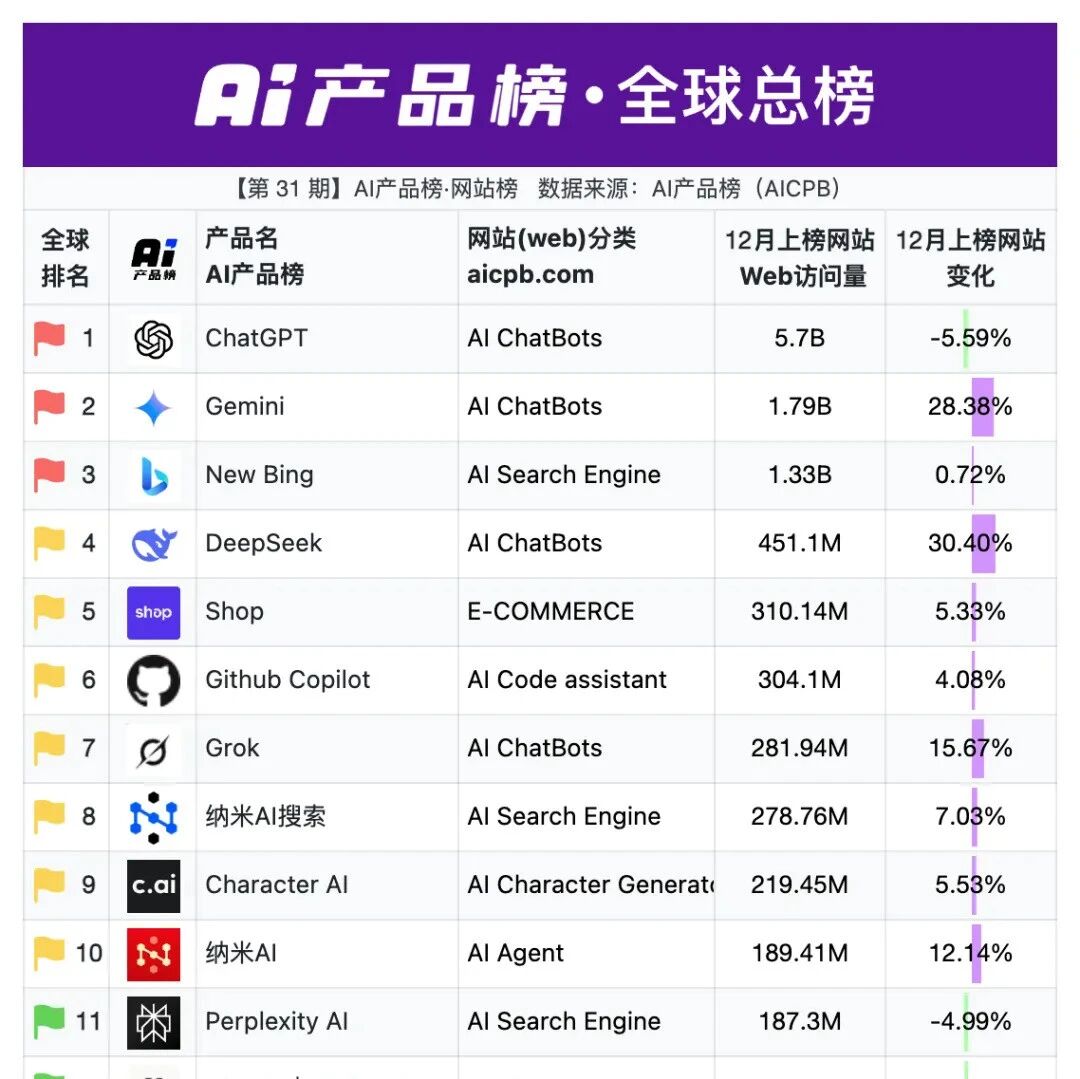 全球AI工具产品排行榜出炉!第一名你认可吗? ittbank · 公众号 · · 1 周前 · |