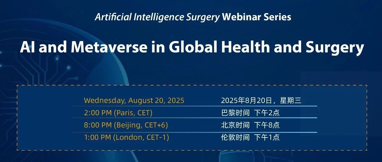 会议预告|人工智能与外科线上研讨会系列:AI及元宇宙在全球健康与外科领域的融合应用 南山呼吸 · 公众号 · · 3 月前 · |