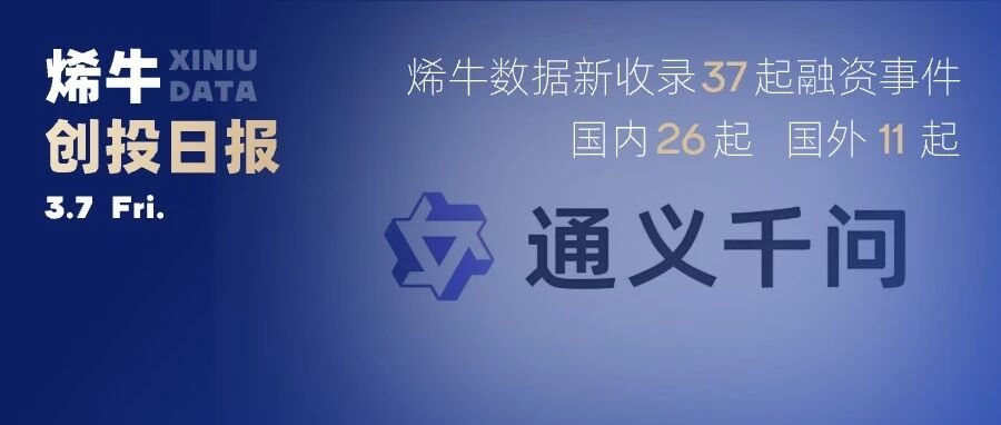 AIGC、具身智能赛道融资频繁;安徽省国资机构创谷资本出手活跃 | 烯牛数据2月投融资观察 烯牛数据 · 公众号 · · 8 月前 · |