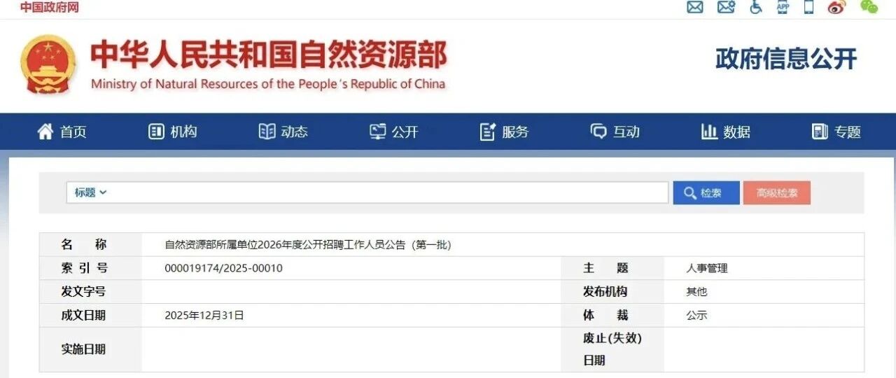 自然资源部所属单位2026年度公开招聘工作人员公告(第一批),招聘634人,42家单位, 418个岗... 地球资源与地质活动 · 公众号 · · 1 周前 · |