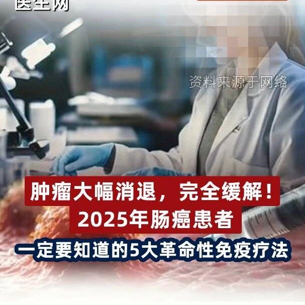 肿瘤大幅消退,完全缓解!2025年肠癌患者一定要知道的5大革命性免疫疗法 国际肿瘤医讯 · 公众号 · · 3 月前 · |