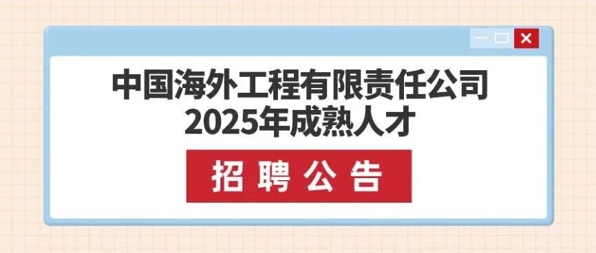 中国海外工程有限责任公司2025年成熟人才招聘公告 中国海外 · 公众号 · · 2 天前 · |