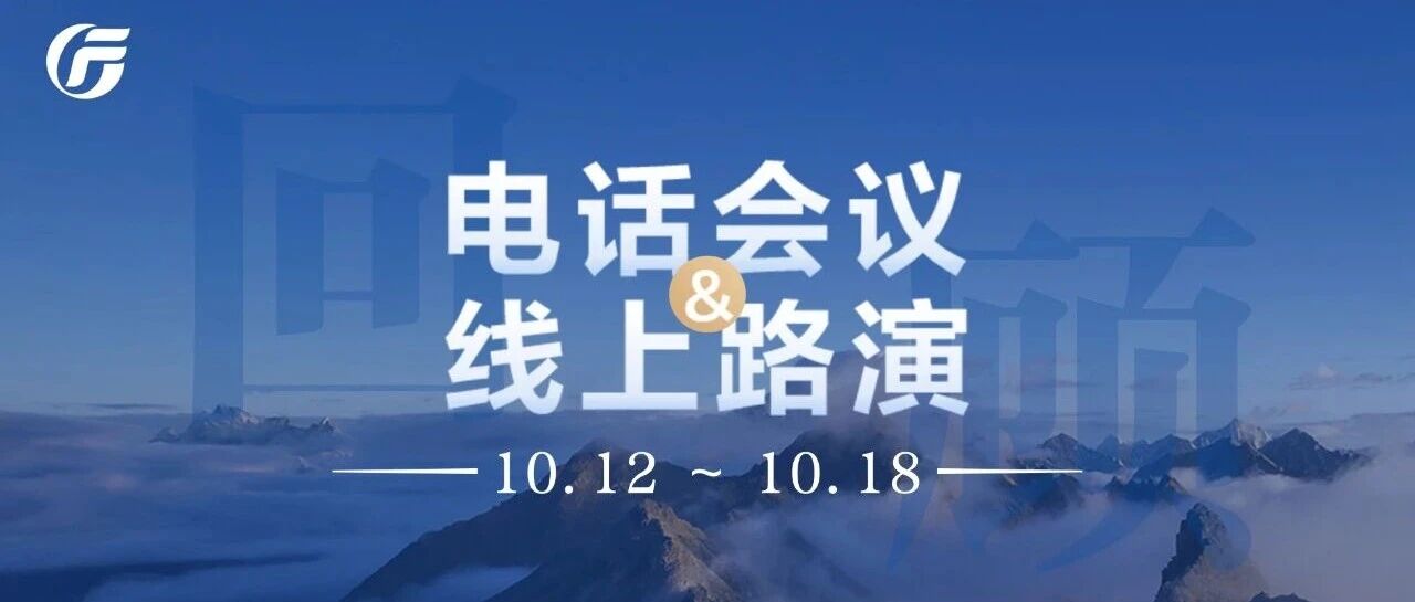 广发研究 | 本周电话会议及线上路演回顾(10.12-10.18) 广发证券研究 · 公众号 · 证券 · 1 周前 · |