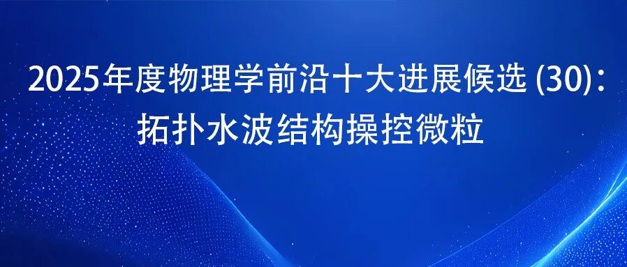 2025年度物理学前沿十大进展候选(30):拓扑水波结构操控微粒 蔻享学术 · 公众号 · · 3 天前 · |