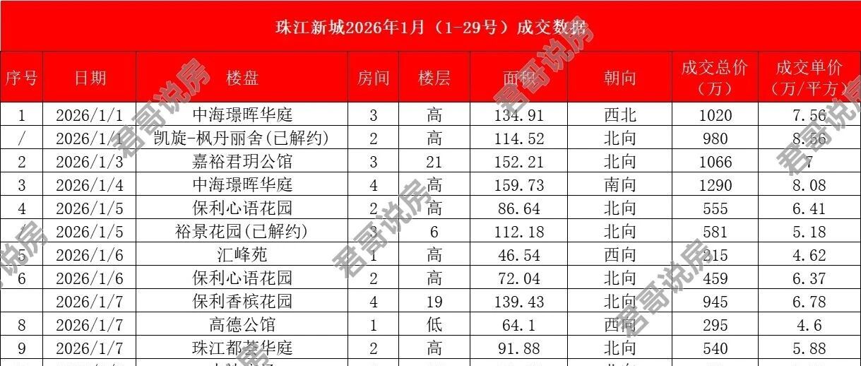 每日更新:珠江新城2026年1月(1-29日)成交数据 君哥说房 · 公众号 · · 1 月前 · |